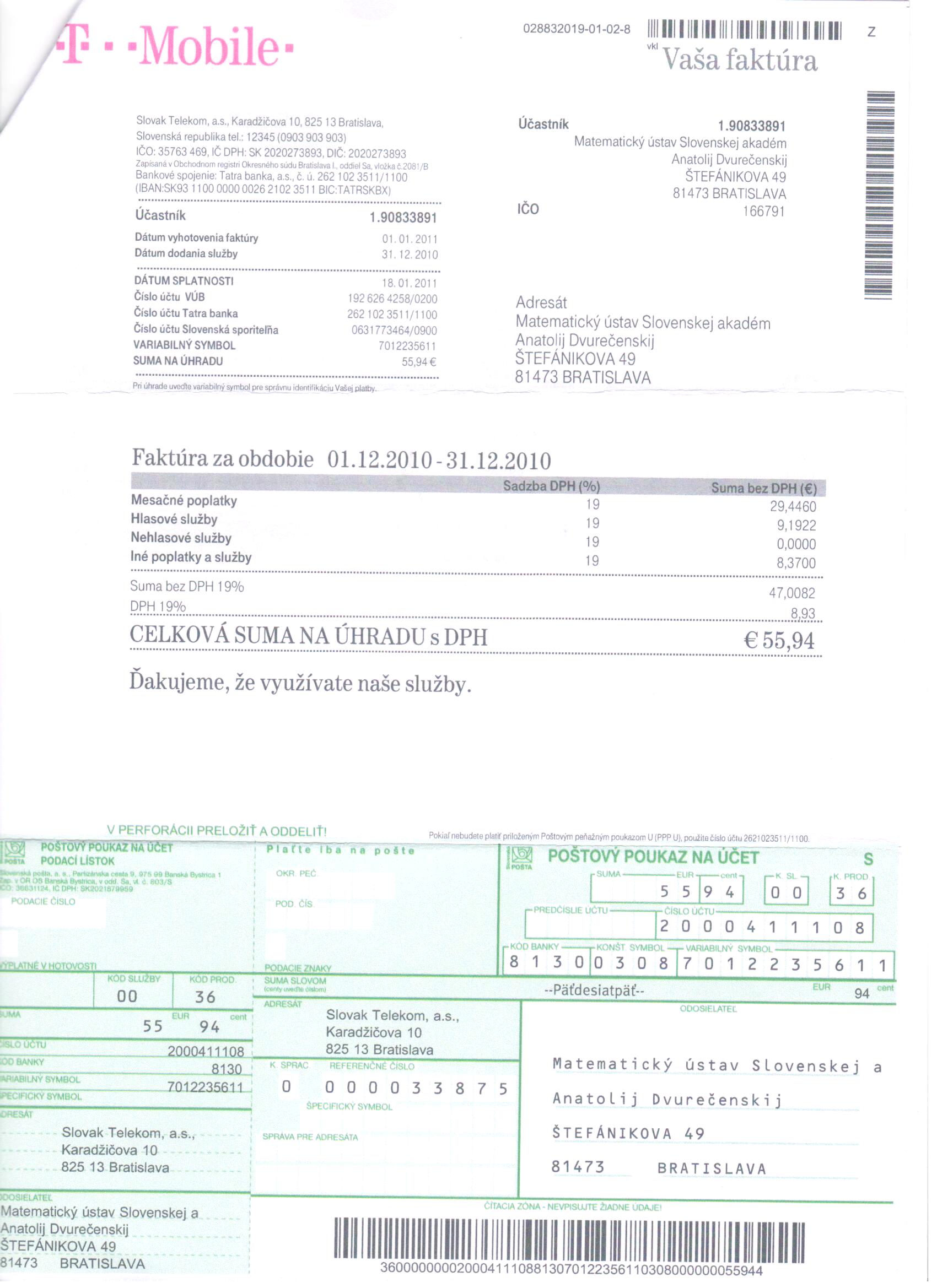 | Faktúra december 2010 | 55,94 EUR | ||||